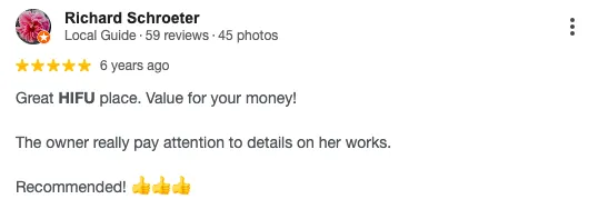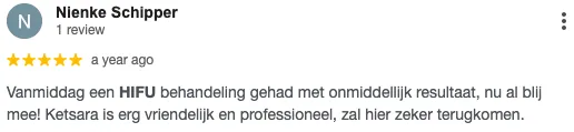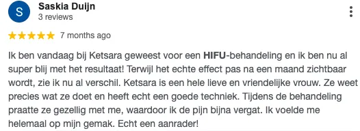 "ik ben echt verbaasd over de resultaten. Ik heb een prachtige lifting gekregen en de structuur van de huid is veel gezonder geworden. Echt een aanrader!"
